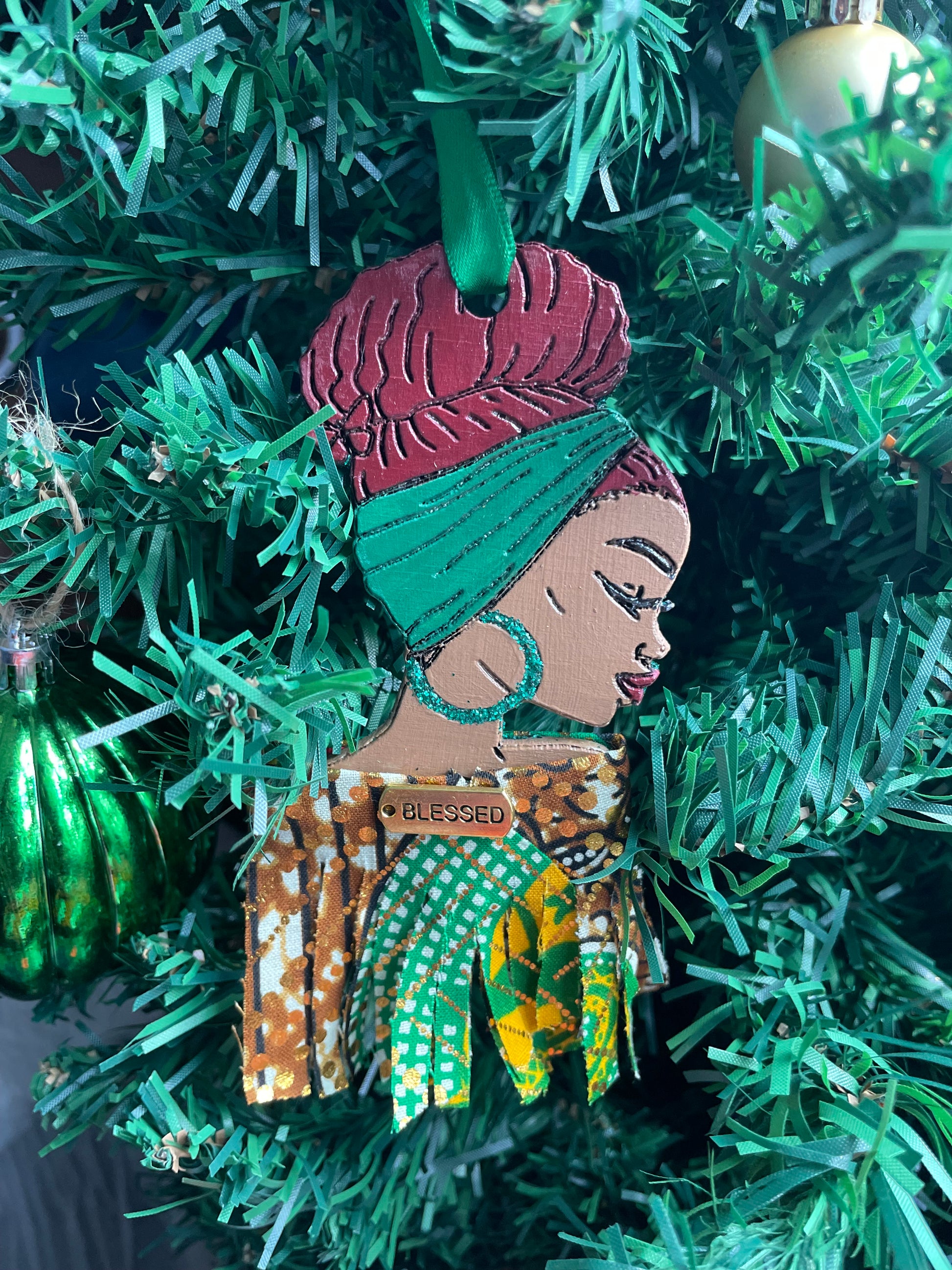 Snuggle up to Baby, it's Cold Outside and give your Christmas tree a warm and fuzzy hug. This beautifully-crafted wooden ornament steps out in style with a luxuriously furry shawl--she's surely that girl! 3.5 inches high.