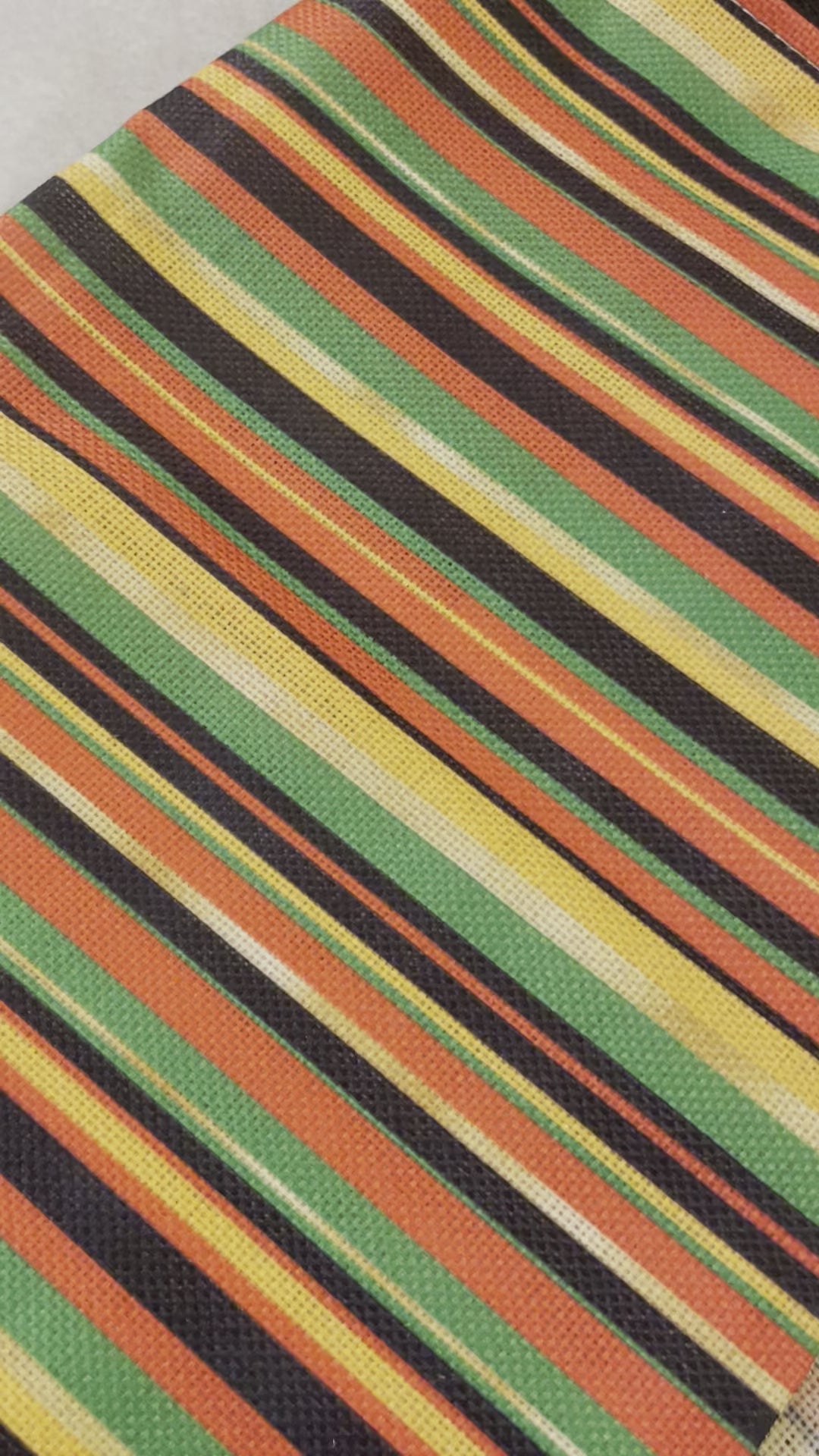 Red, Green, Gold, and Black striped button earrings with black tassels. Ear pair is hand cut from fabric the stripe pattern will vary per earring.