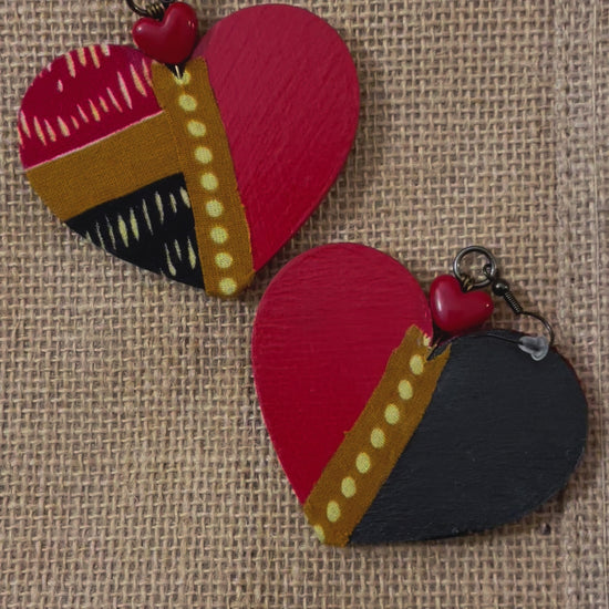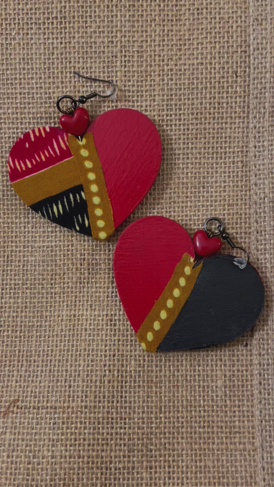 Fall in LOVE with these African Fabric Heart-Shaped earrings – the ideal fusion of style and vibrancy for Valentine’s Day or any day! A blend of handpainted wood and vibrant fabric, adding a touch of Amor to your everyday wear. Embrace uniqueness with these heart-shaped treasures! Lightweight and approximately 3 inches.